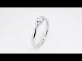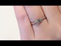 中石の両サイドに3石ずつ留めたメレダイヤが、まるでハートが向き合っているように見えるデザインです。フェミニンなフォルムがやさしい指先を演出します。