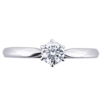 定番の6本爪、ストレートライン。特徴は、細めのアームがより一層ダイヤモンドを強調しています。高さを抑えてセットしてあり、使い易さもしっかりと考えたリング。