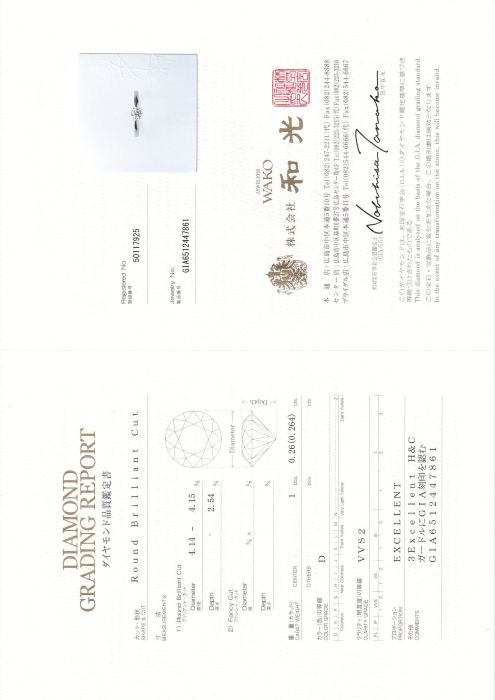 【世界品質評価基準GIA(米国宝石学会)鑑定書】