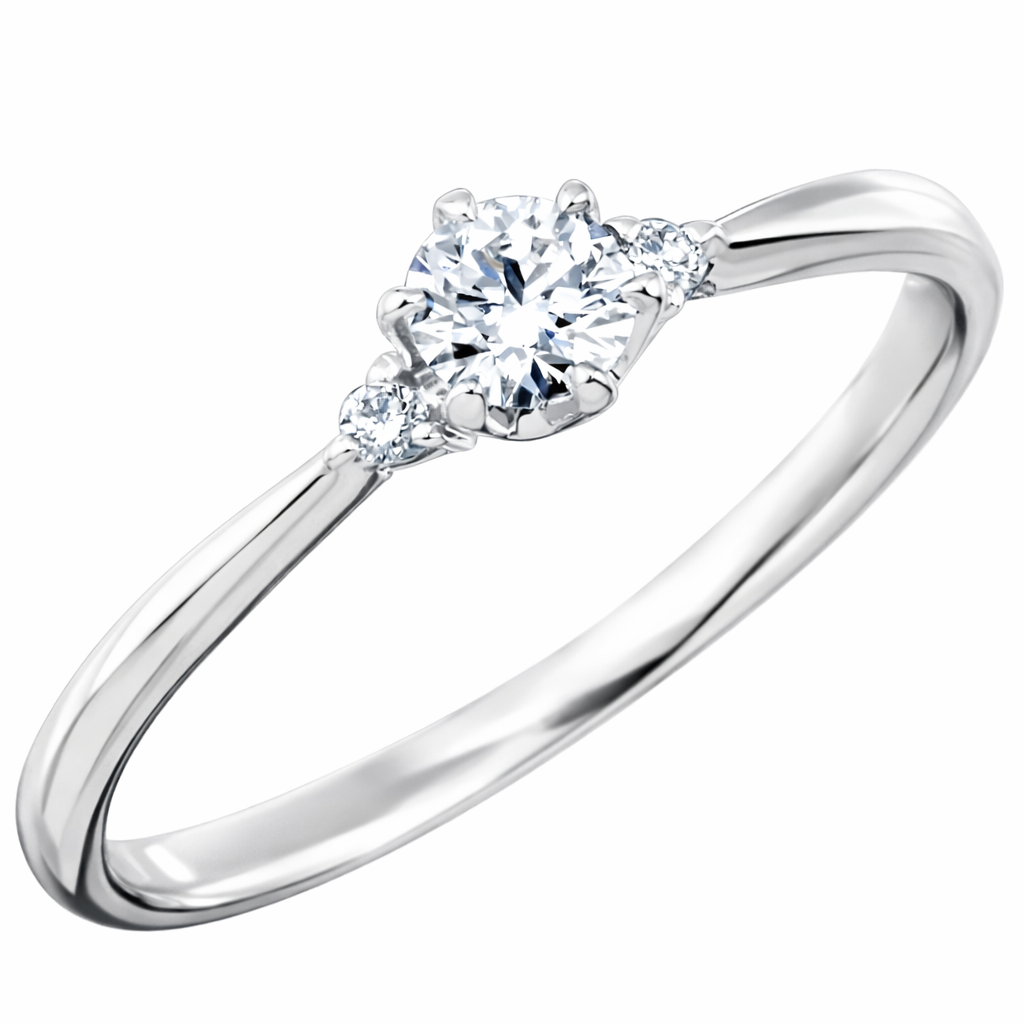 すっきりとした、ストレートの細身のアームにサイドメレダイヤを1石ずつセットしてあります。シンプルな使い心地がポイントです。