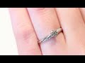 左右それぞれ3石ずつメレダイヤを並べた、ゆるやかなウェーブラインのアーム。6本爪で留めたセンターダイヤモンドは、まさにキラキラと輝く光の結晶。当店人気デザインの一つです。
