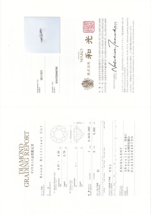 【世界品質評価基準GIA(米国宝石学会)鑑定書】