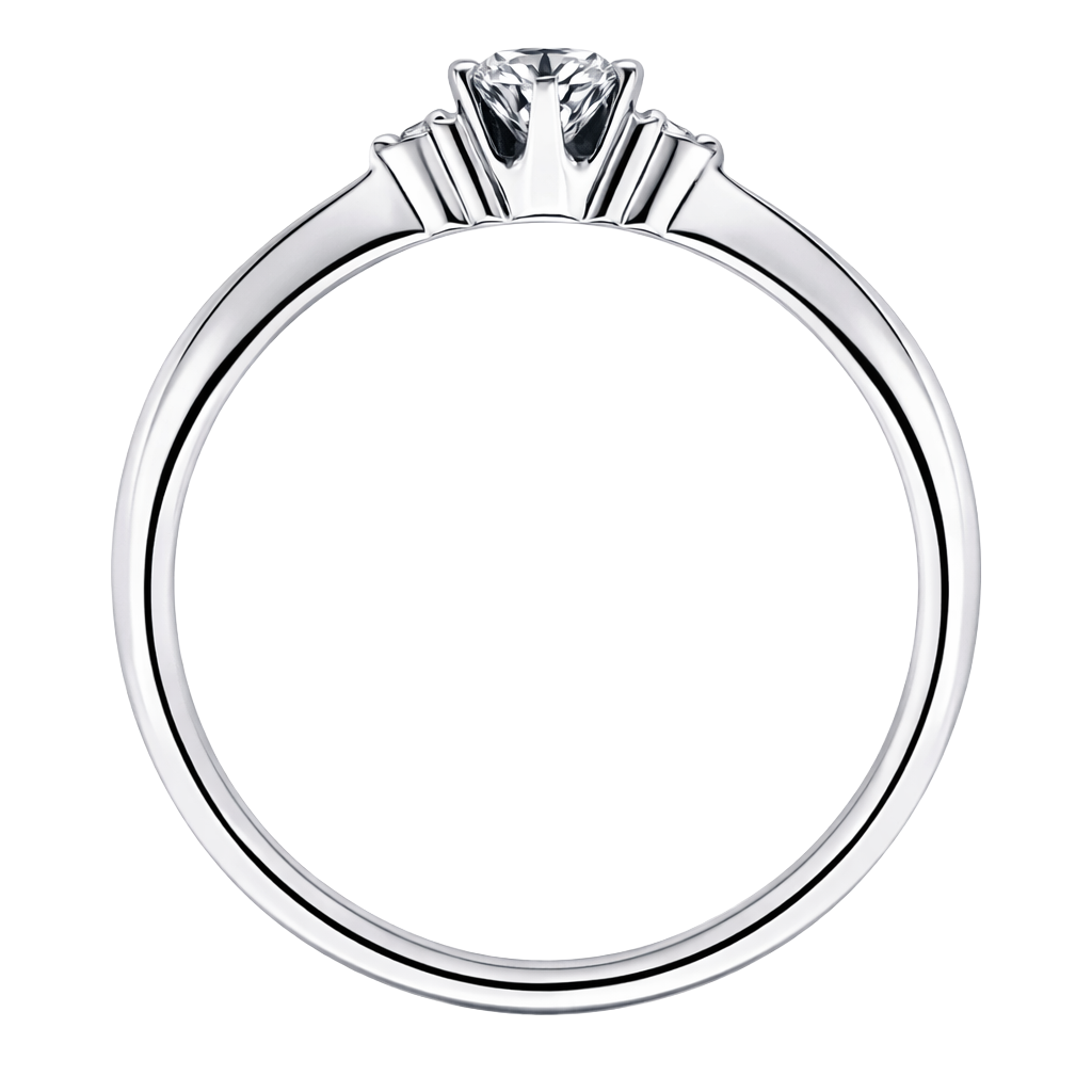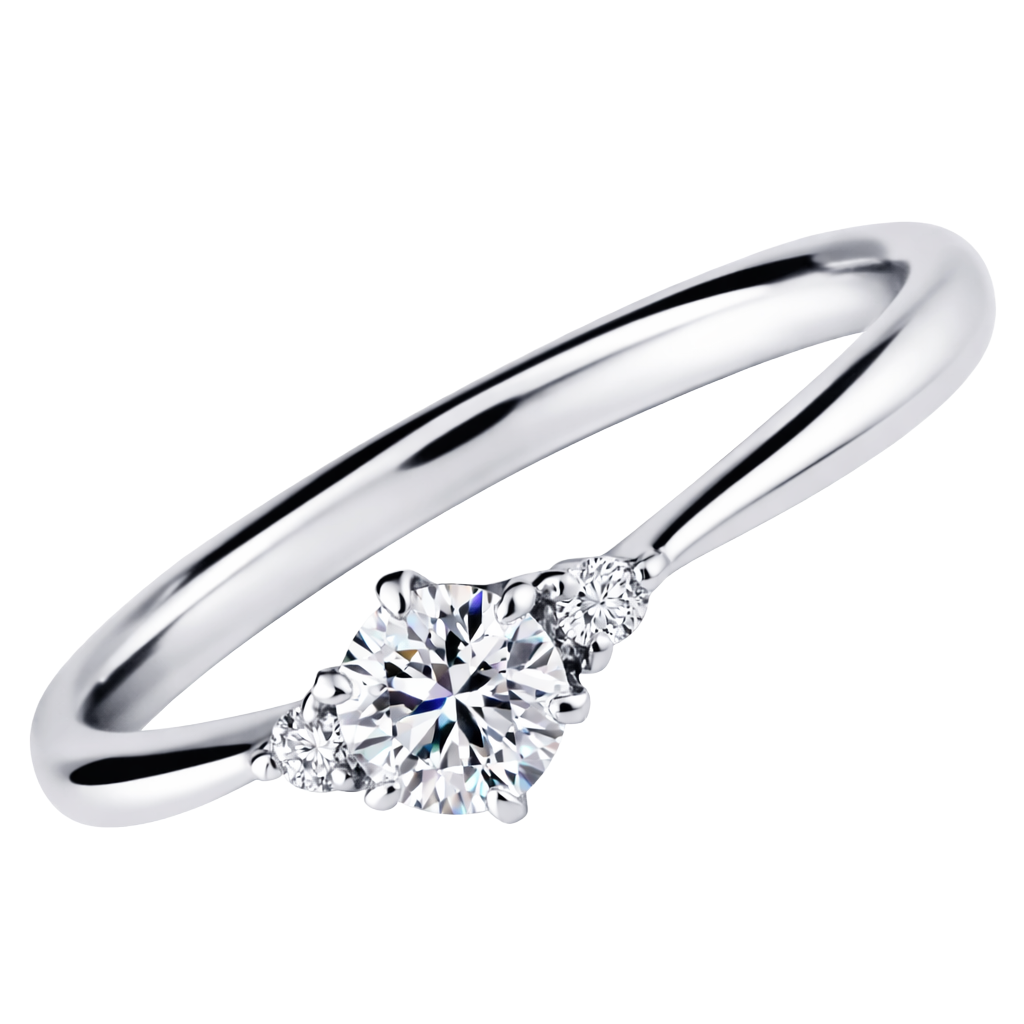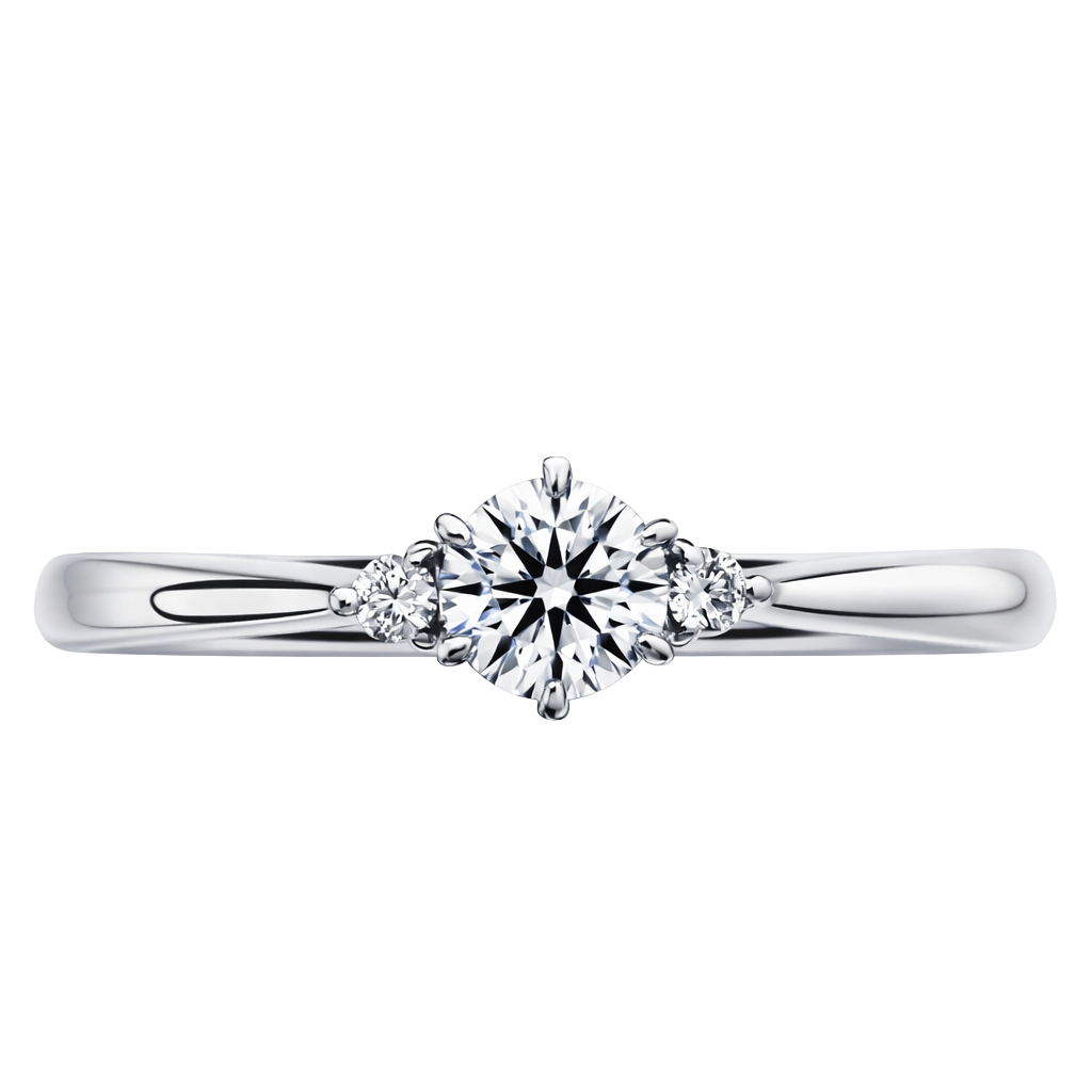 センターストーンに寄り添うように両サイドのメレダイヤをセット。透かしの効果が見た目の美しさと、輝きがアップ。更にダイヤの高さ(段差)を抑える効果もあり、着け心地までも良くなります。