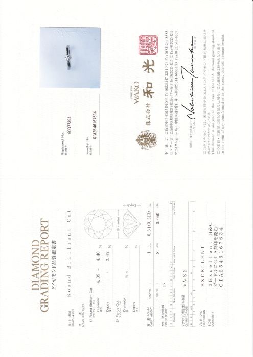 【世界品質評価基準GIA(米国宝石学会)鑑定書】