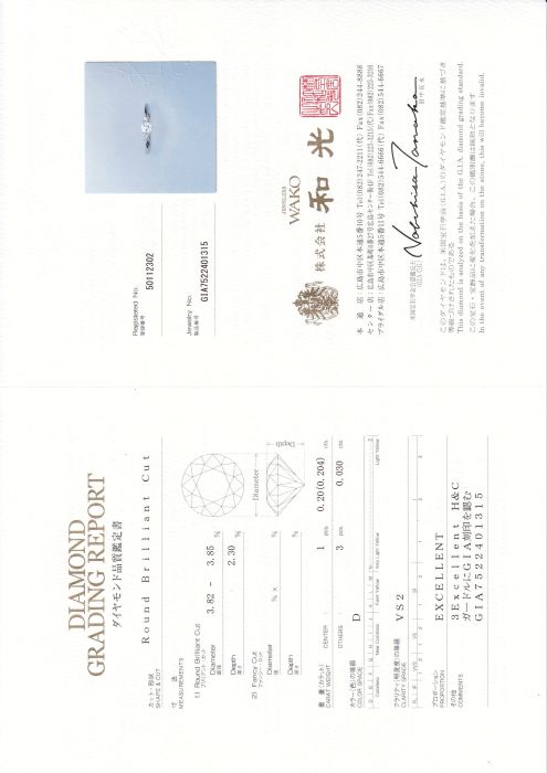 0.204ct/ D/ VS2/ 3EX・H&C