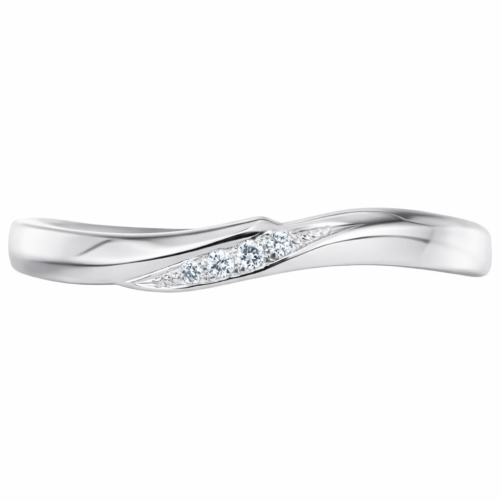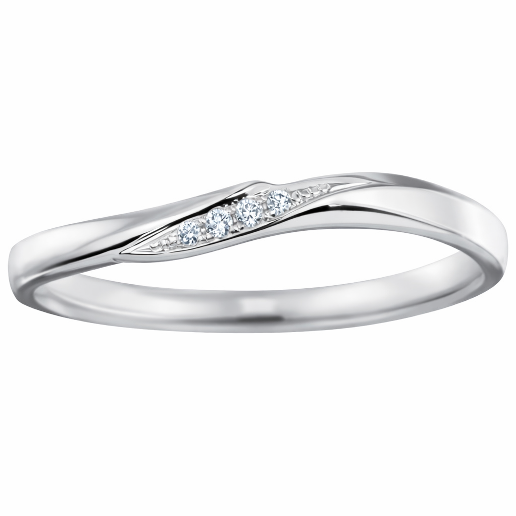 ウェーブ感がしっかり感じられるシルエットに4石のダイヤあしらい、遊び心の中に落ち着いた輝きを